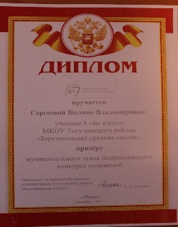 муниципальное казённое общеобразовательное учреждение Тогучинского района "Березиковская средняя школа"